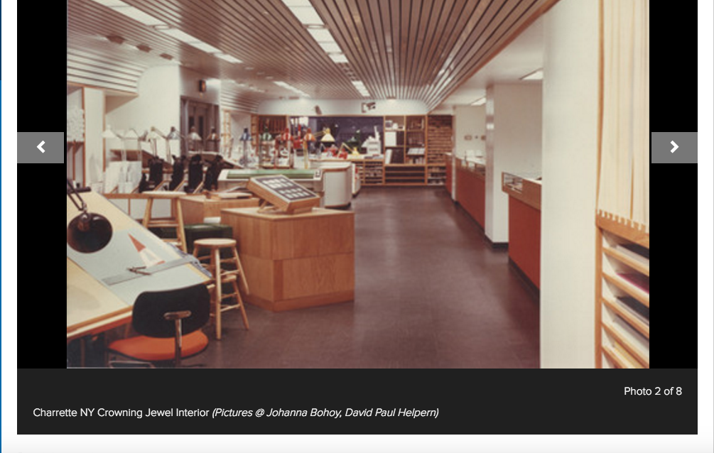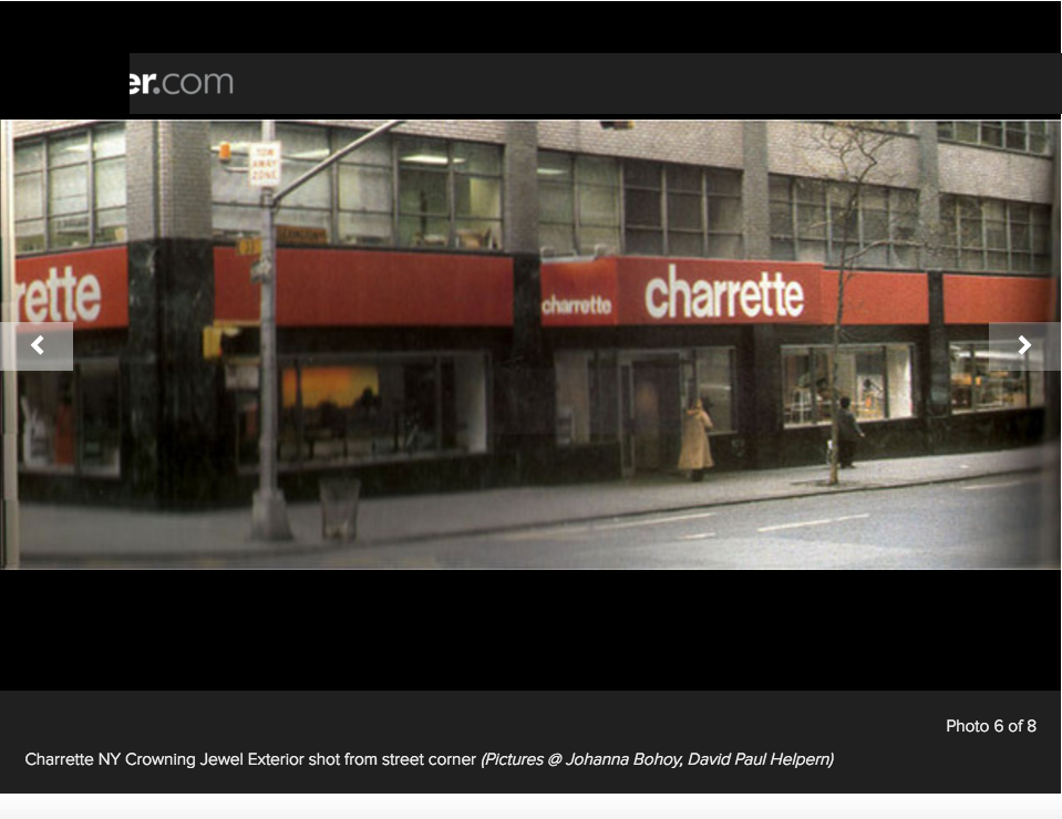 Also, a special thank you goes to fellow New Yorker and architect, David Paul Helpern for sharing his memories as the architect of the Charrette NY Crowning Jewel built at the corner of the East 30’s and Lexington Avenue in New York.