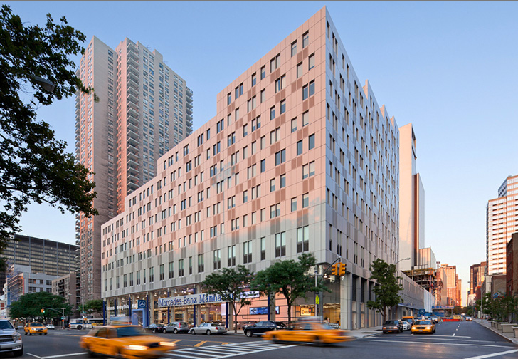 This Inhabitat article by Molly Cotter describes it best, “Environmentally conscious luxury condos are popping up all over Manhattan lately, and Mercedes House is no exception. This incredible 1.3 million square foot compound features just about everything, including over 800 residential units, dozens of commercial and storage spaces, horse stables for the NYPD, and of course, a state-of-the-art Mercedes-Benz dealership. With a sparkling LED-lit lobby by Leeser Architects and so many rooftop gardens even Central Park would be envious, the Mercedes House is a green oasis on Manhattan’s riverside edge.”