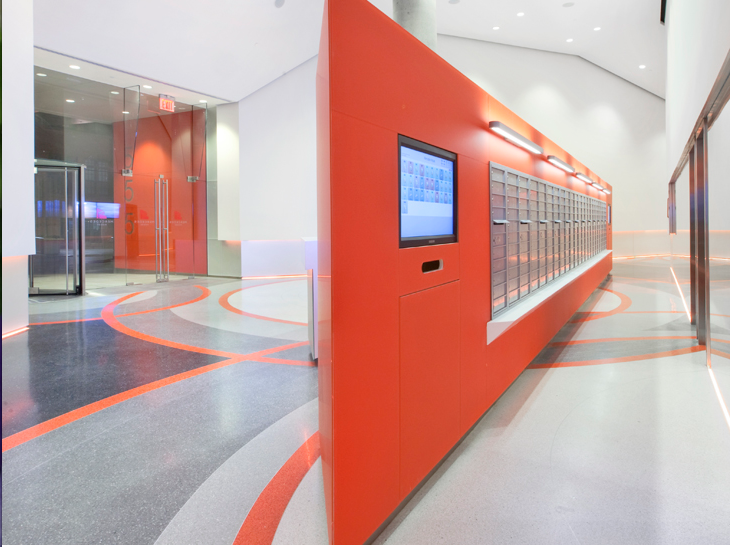 Another article by Molly Cotter of Inhabitat goes on to describe the lobby by Leeser Architects.