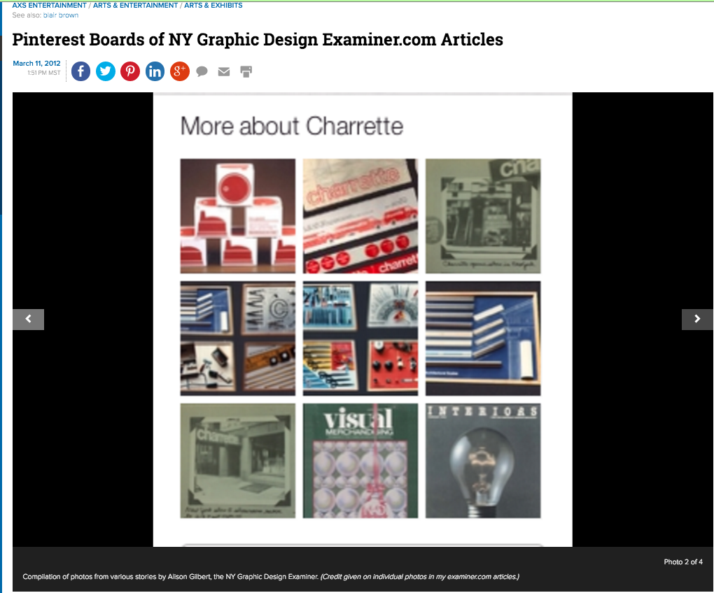 What began as a single article, written by me as the NY Graphic Design Examiner, evolved into a series of articles, seven in total, that spanned a year’s time to complete. Although the time to compile all the materials, including researching, interviewing primary sources and so on did not take a full year, a new assignment as an author for The Digital Brand Marketing Blog took me away from the project for sometime during that year. In fact, this multi-author blog has made it to the semi-finals of the Social Media Examiner’s Top Ten Blogs 2012 competition.