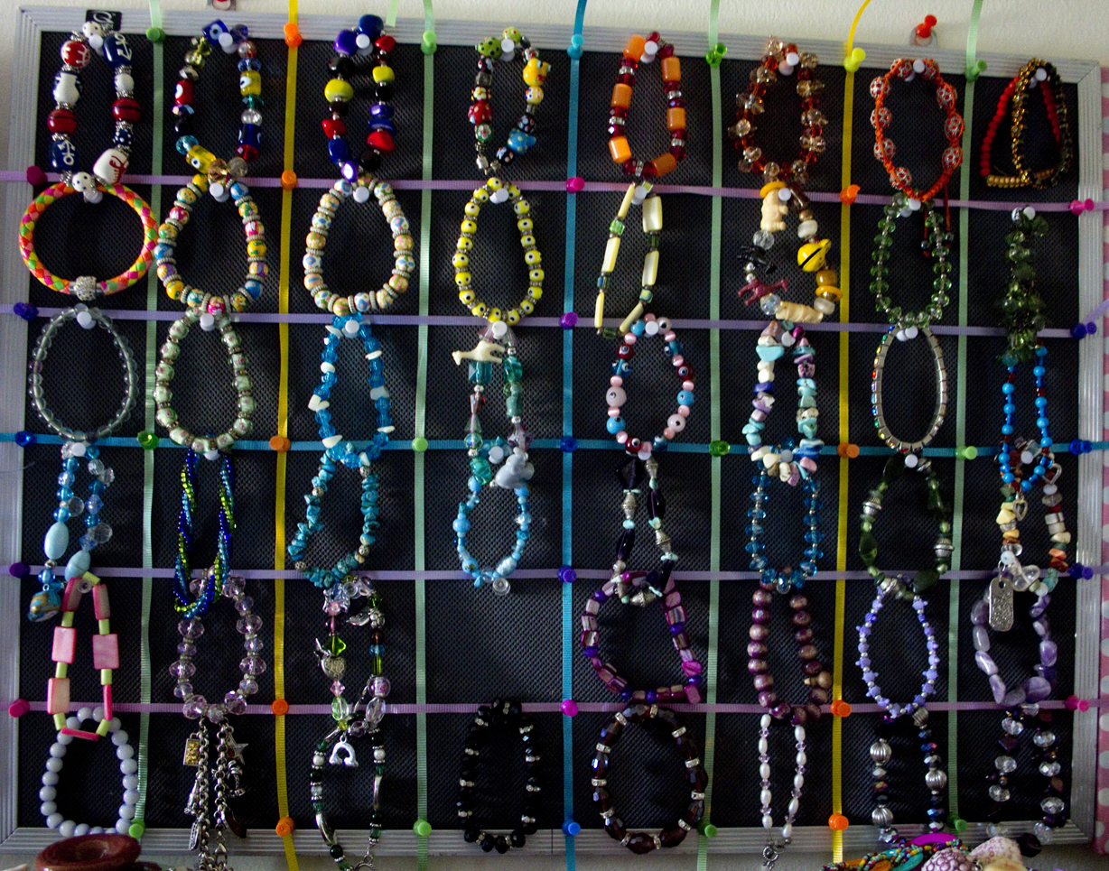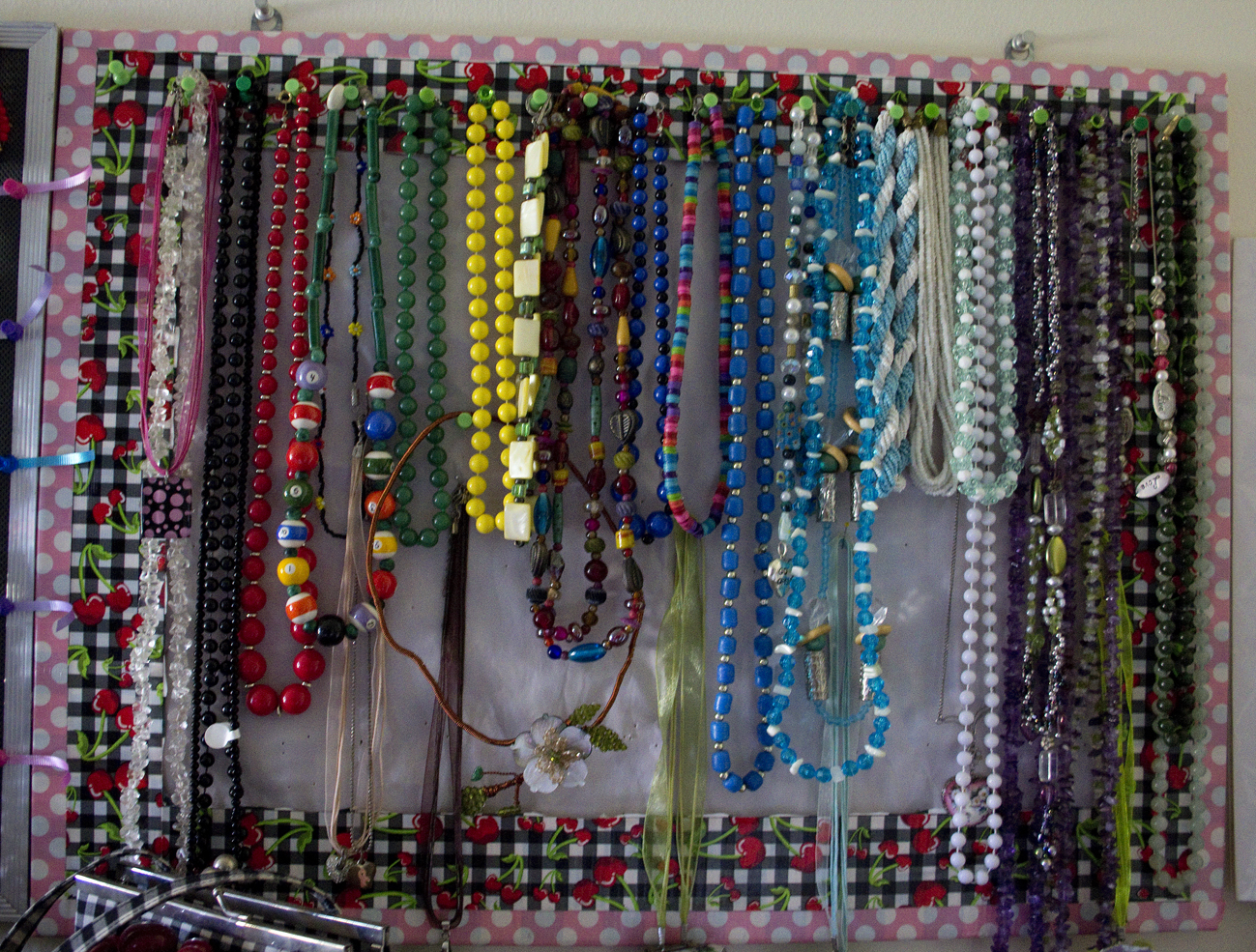 • a board for about 2 dozen necklaces, again using color order as an additional organizational system